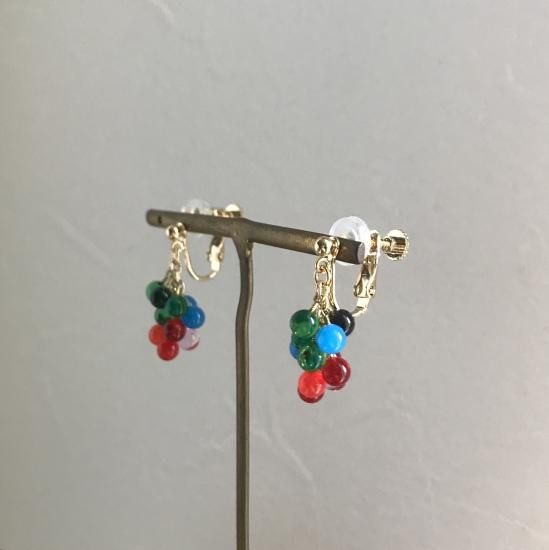 つぶつぶしたクリアなビタミンカラーの小さな球体が集まった、軽さのあるボリューム感が可愛い。